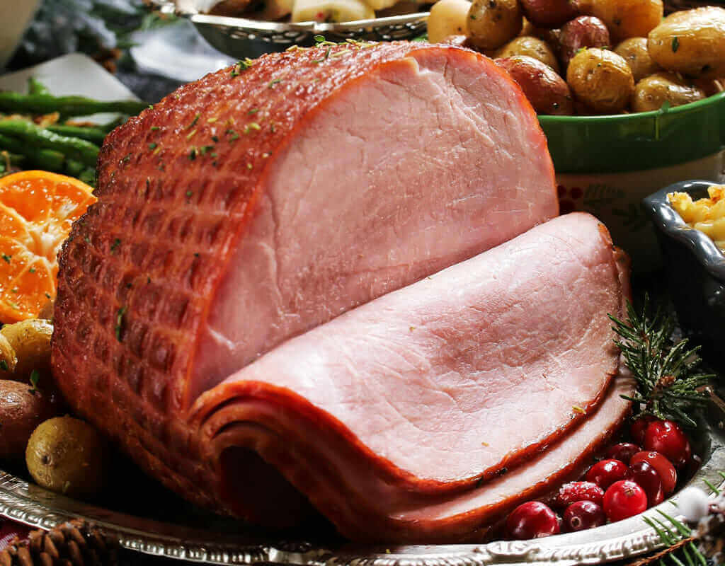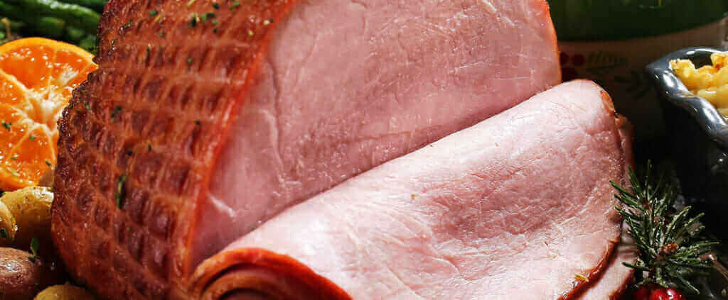 Warm covered ham at 325 degrees for 12 minutes per pound, and then remove the cover and finish the ham at 425 degrees for15 minutes. Enjoy!